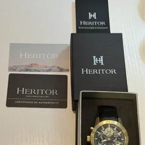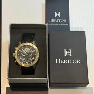 Authentic Heritor 44mm Automatic Hannibal Semi-Skeleton Leather-Band Watch
