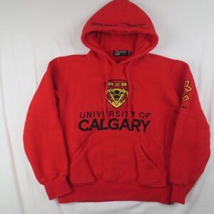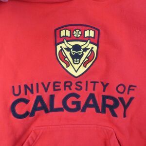 University Calgary UC 2014 Coat of Arms Motto Hoodie Adult S Red Pullover Heavy