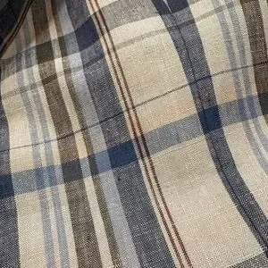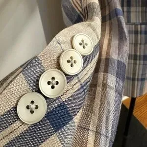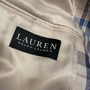 LAUREN Ralph Lauren Lassiter 100% Linen Blue, Brown and Tan Plaid Blazer, 46R