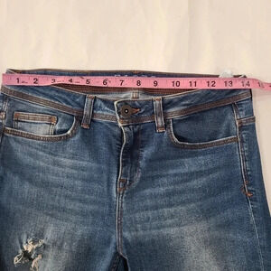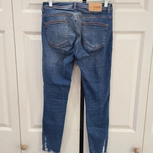 Zara Size 4 Distressed Mid Waist Cropped Ankle Jeans Skinny Raw Hem Stretch