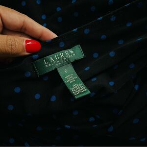 Ralph Lauren Chic Navy Polka Dot Wrap Dress Flattering A-Line Midi Sleeveless