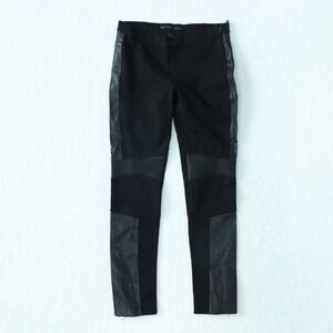 AllSaints Lindsell Biker Pants Women's 29 Black Leather Trim Ankle Zip Skinny