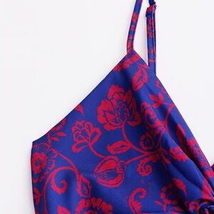 Featuring a beautiful floral print, front twist detail with a keyhole cutout, and an open back with an adjustable tie, it’s perfect for your next beach vacation or summer outing.