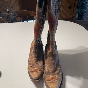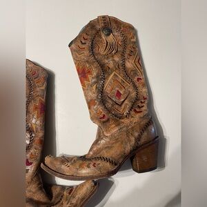 Corral Women’s Size 7 Distressed Cognac Leather Embroidered Snip Toe Boots