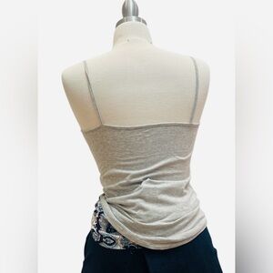 Stylish gray tank top featuring delicate lace trim. Includes a patterned scarf accent for added flair.( pit2pit 17’ Length 25’ Approximately)