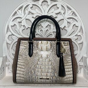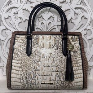 Brahmin Small Finley Satchel Timeless Taupe Skien Leather