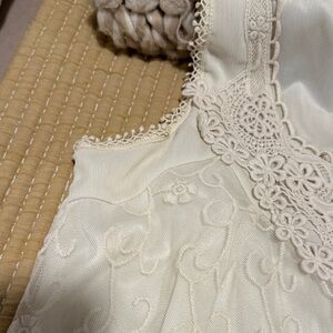 Beautiful cream lace dress with intricate detailing. Perfect for special occasions.