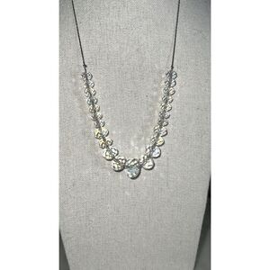 Glass Necklace faceted AB beads graduated silver tone chain EUC 9”