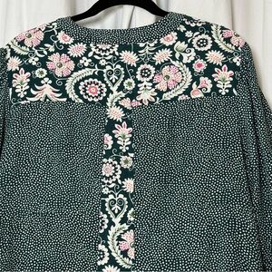 Boden Mollie Patchwork Shift Dress Green Floral Long Sleeve Women’s 16R
