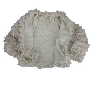 Main Strip Ivory Faux Fur Shag Fringe Jacket Size M