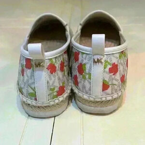 Michael Kors Lenny Espadrille, red flowers with green stems excellent condition