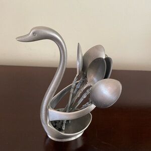 Enhance your dining experience with this elegant silver swan spoon holder set. Perfect for adding a touch of sophistication to your table setting.