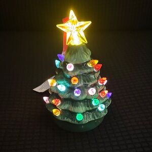 Mr. Christmas. Light up Christmas Tree made of ceramic. Ribbon and tag attached. on/off/timer setting.