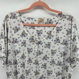Laura Tyler VTGCozy Loungewear Bears Cottagecore Classic Gray/Blue NightGown SzL