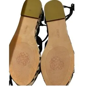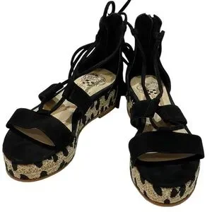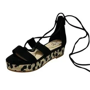 Great stylish VINCE CAMUTO espadrilles! Perfect for your next vacation! Lace up leather ties, complimented by leopard print. Heel height measures 1 1/2 inches. Excellent preowned condition!