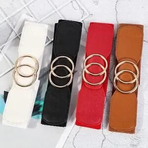 Perfect classic preppy belt with a twist. Dual circular buckle, double circles interlocking. Stretch