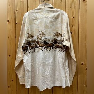 EUC! Vintage 90s Brit & Bridle Beige Horse Print Western Cowboy Shirt