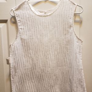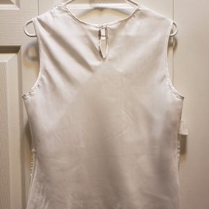 White Sleeveless Pullover Top. Size large. The estimated measurements Chest 19", Lenght 23". The blouse is made of 100% Polyester. This is a pre-owned item and has been cleaned.