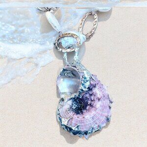 Once upon a time, a majestic conch shell found its way to a skilled artisan. With delicate hands, it was transformed, adorned with shimmering silver metalwork and embraced by lustrous pearls. This necklace tells a tale of the sea and the art of upcycling, inviting its wearer to carry a piece of oceanic wonder with them.