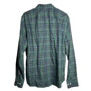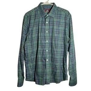 UNTUCKIT Mens Large Langon Green Navy Plaid Wrinkle Free Cotton Dress Shirt
