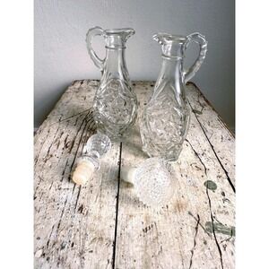 Vintage Anchor Hocking Early American Star Oil Vinegar Glass Decanter Pair