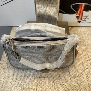 Michael Kors Carmela Silver Sm Pouchette with Cross Body Strap
