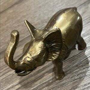 Charming brass elephant figurine. Perfect for adding a touch of elegance to any space.