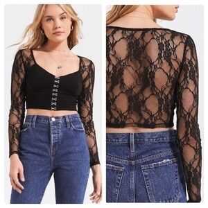 Urban Outfitters silence + noise Lace Back Long Sleeve Corset Cropped Top Hook Eye Closure