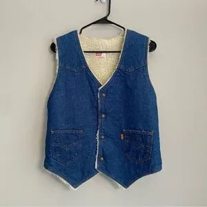 Vintage Levi’s 70s Fleece Lined Button Up Orange Tab Denim Vest