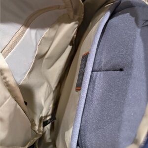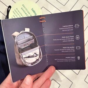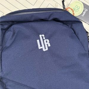 New. Navy, black and grey laptop backpack. Silver logo embroidered on front.