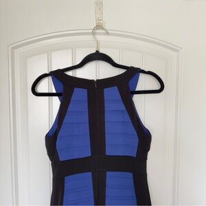 Cache 4 Royal Blue Black Color-block Cocktail Pleated Sleeveless Sheath Dress