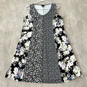 J. Jill Wearever Collection Sleeveless Tank Knee Length Dress Size M V-Neck Black White Mixed Floral Print Travel