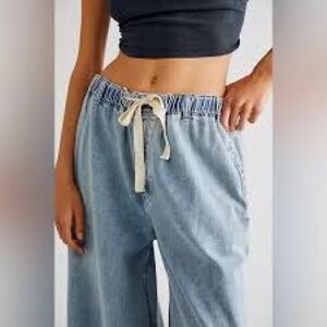 FP WE THE FREE CLOVER Wide-Leg Light Blue Denim Jeans Size S NWT