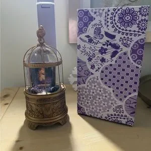 In like new condition and plays enchanted with no issues. Shipping in original Snowglobe box with additional packaging to make certain the Snowglobe arrives to you safely. Price is firm.