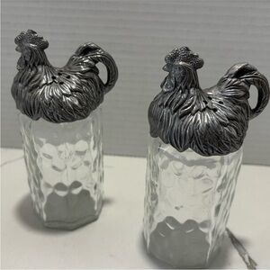 Vintage Arthur Court Dimpled Glass and Aluminum Rooster Salt Pepper Shakers