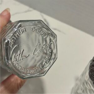Vintage Arthur Court dimpled glass and aluminum rooster salt and pepper shakers made with special aluminum alloy that will never need polishing and won’t tarnish. Screw off top for easy refilling. Measure about 5.5” tall by 2” wide. Food safe. Set of two. Hexagon shaped dimpled glass. Excellent condition.