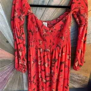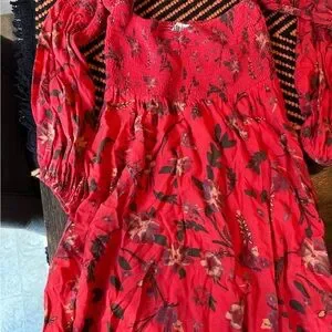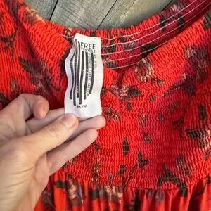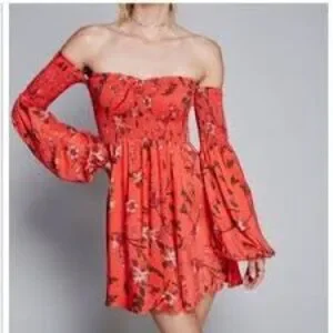 Free People off the shoulder smocked floral boho mini dress size medium