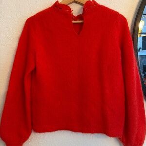 Sézane red sweater with delicate embroidered detailing along the neckline. An elegant, timeless piece in excellent condition. Price is firm—I’m still adjusting to life in the South and realizing I don’t need as many (or possibly any) sweaters. If it doesn’t sell at this price within a month, I plan to sell it to a friend locally, with the option to buy it back if I change my mind