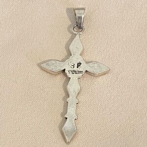 This beautiful cross features inlayed turquoise,coral,onyx,opal,spiny oyster,lapis, and more—a truly stand out piece! Signed by artist.