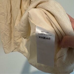 Anthropologie Linen Wrap Mini Dress Cream Tan size medium. Pockets. Collar top. Good condition, faint mark near pocket.