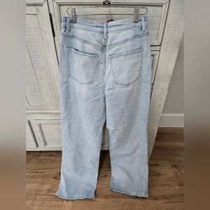 Just as cute as they are comfortable. Introducing the 90's Vintage Loose Distressed Jeans by VERVET BY FLYING MONKEY, a retro-inspired essential for your denim collection. These blue jeans feature a wide leg style with a distressed finish and a convenient button closure. Designed with practicality in mind, they come equipped with pockets for everyday use. MSRP $64