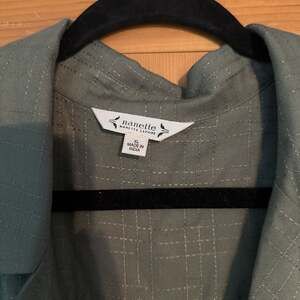 Nanette Lepore sleeveless collared top in a deep green. This stylish top features a unique draped, wrap-style front and a textured fabric. Made from 100% rayon. Perfect for a chic casual or dressy look. Excellent pre-owned condition, no visible flaws.