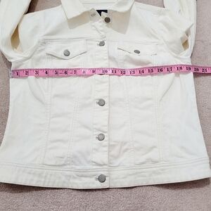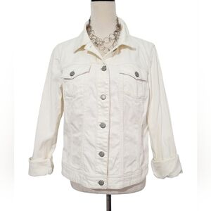 The Limited White Denim Trucker Jacket Women's Size Large Stretch Button Front