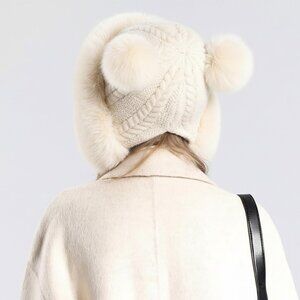 Thoughtful Design for Versatility:This acrylic knit beanie doesn't just look great; it's also designed for practicality. With lovely pom poms, including one on top and two on the ear flaps, it's a stylish choice for chilly days. there's a convenient split in the back for easy ponytail wearing, making it perfect for all-day comfort and style.