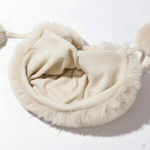 Women Beige Winter Sherpa Beanie Hats Knit Ear Flaps Peruvian Cover Ears