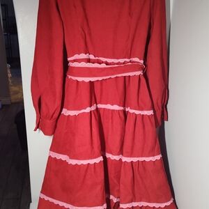 TCEC Vibrant Red Midi Dress with Pink Accents
