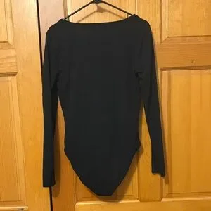 Elegant black bodysuit. Long sleeves. Square neckline. Snap closure at bottom.