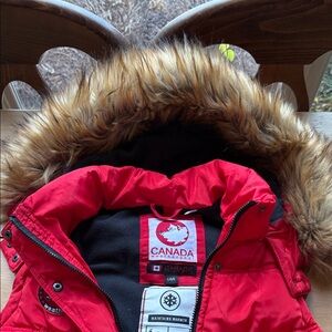 Canada weathergear Red Puffer Vest with removable Fur Hood size L