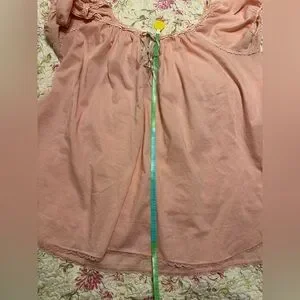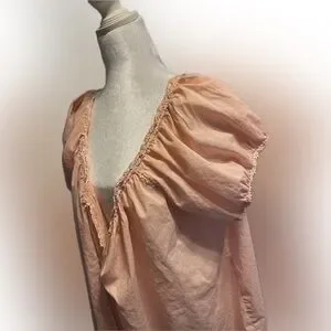 This is worn very loose and falls off-shoulder, one or both. Chic and flowing design. Delicate lace detail and pretty edging. The thin fabric is sheer.