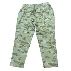 Lane Bryant camouflage pants in NWT condition. Zipper and button entrance, welted back pockets, slanted front hand pockets, stretchy elastic waistband. Size listed is 16. Approximate measurements: length 43”, inseam 31”, rise 12”, waistline 18.5” laying flat (easily stretches more), hips 24” laying flat.